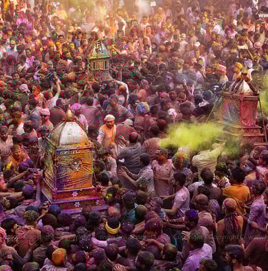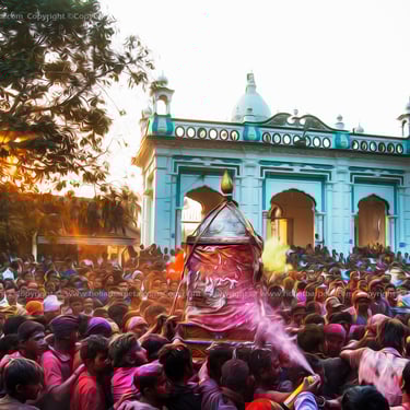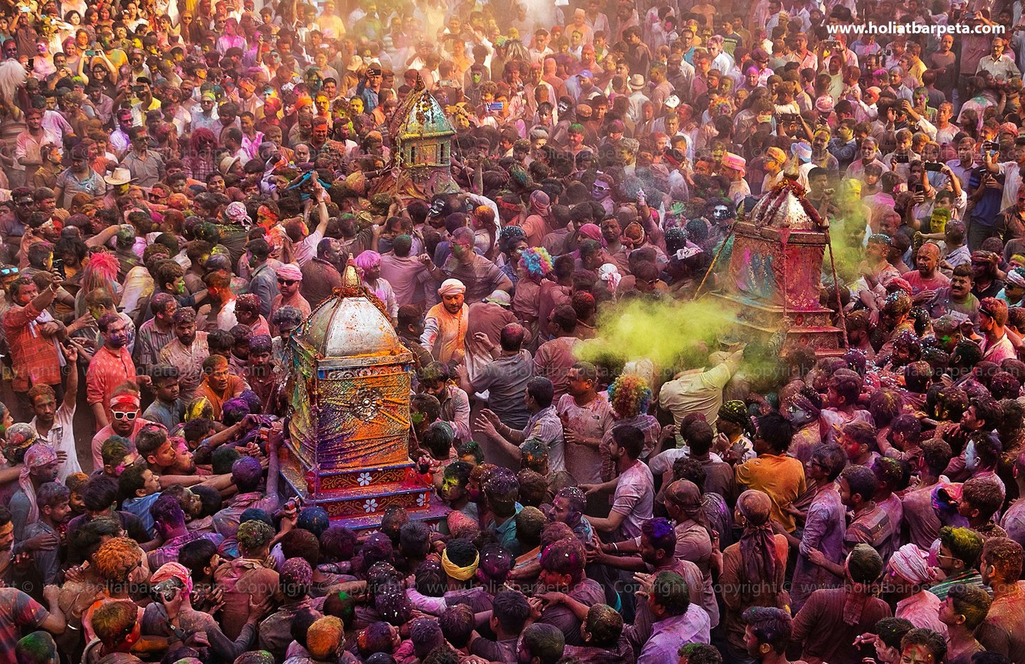 Colour brings hope, spirit and liveliness. Colours blended with songs, dance, and fun become a celebration. The celebration of colours with soulful spirituality makes the exciting festival—Holi. Barpeta, a small town of Assam, has been celebrating this festival with utmost devotional spirit. Here, the breeze of spring (Vasant) calls everyone to get ready for upcoming occasion with all religious zeal. The Barpeta Satra, for its unique spiritual essence, has been attracting numerous visitors to this place. Countless devotees gather at Barpeta Satra every year from all over the nation to offer their prayer, and participate in the exuberant festival of Holi.