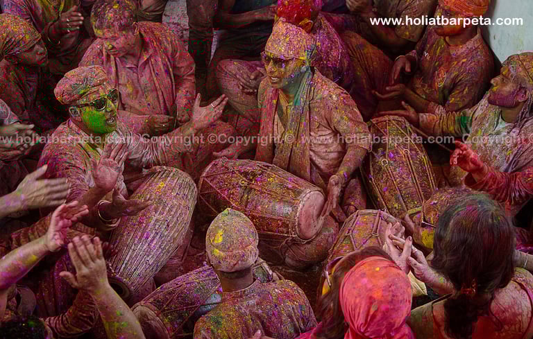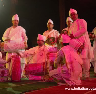 Holi songs are an integral part of the cultural and religious celebrations, particularly in Barpeta. Initially composed by Mahapurush Madhavdev, these songs were later enriched by modern writers in the early 20th century and continue to be composed by contemporary artists today.