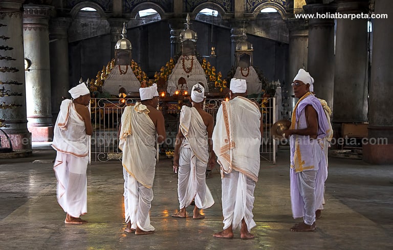 These dramas are traditionally staged inside the Rangial Griha. Additionally, during the domahi of Bahag Bihu and Doul utasav, Barpeta Satra presents six religious dramas and two to three mythological dramas in the main courtyard (Tupor Sotal), further enriching the cultural and spiritual fabric of the Satra.